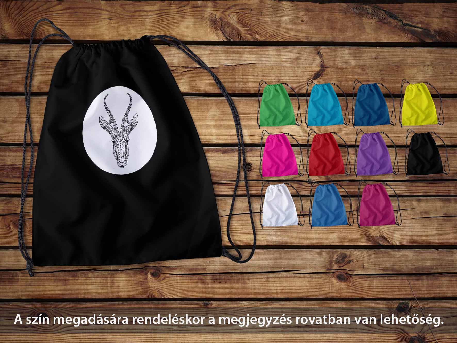Egyedi mintás tornazsák.