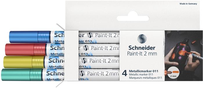 Metálfényű marker készlet, 2 mm, SCHNEIDER "Paint-It 011", 4 különböző szín